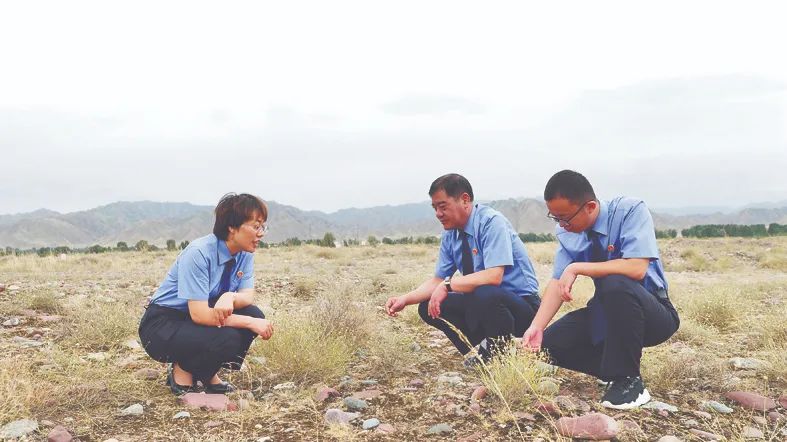 酒泉市检察官在一处公益诉讼涉案现场走访。