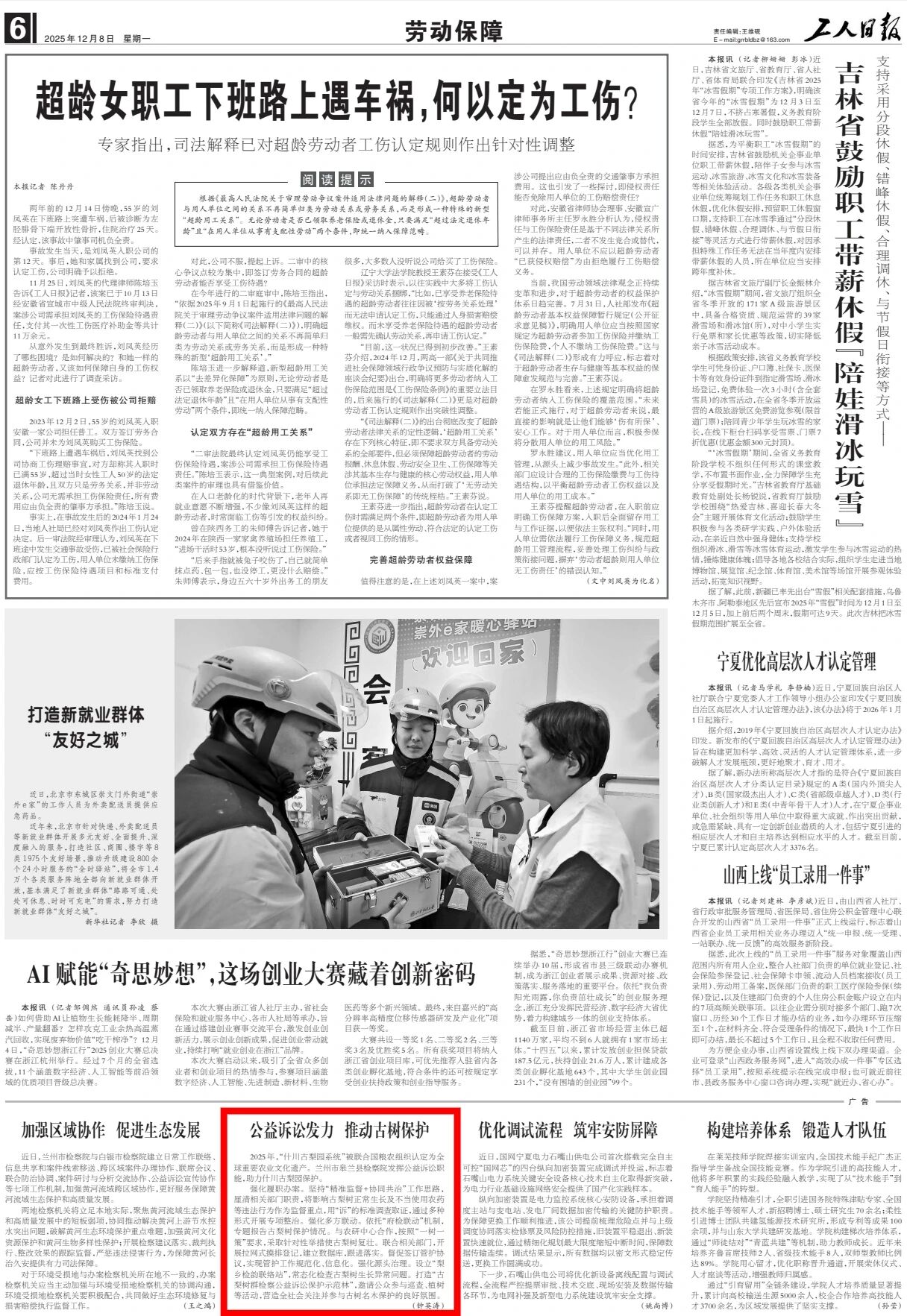 2025年12月8日,工人日报刊发《公益诉讼发力 推动古树保护》。